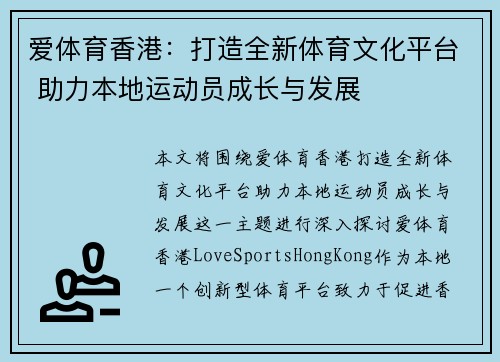 本文将围绕“爱体育香港:打造全新体育文化平台,助力本地运动员成长与发展”这一主题进行深入探讨。爱体育香港(Love Sports Hong Kong)作为本地一个创新型体育平台,致力于促进香港本地体育文化的建设和发展,尤其是在年轻运动员的培养和赛事推广方面发挥着至关重要的作用。文章将从四个主要方面展开分析:首先,爱体育香港的起源及使命;其次,如何通过平台促进本地运动员的培养与成长;第三,爱体育香港在提升香港体育文化中的作用与意义;最后,平台如何为香港体育行业的未来注入新动力。每个方面将分别从不同的角度进行详细阐述,最终综合分析爱体育香港在香港体育发展中的独特价值与贡献。